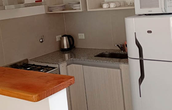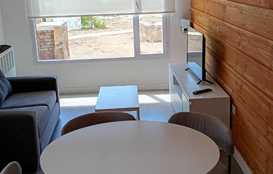 Las cuatro unidades cuentan con calefacción central y se distribuyen en dos plantas. En la planta alta, disponen de dos habitaciones (una con cama matrimonial y otra con dos cuchetas) y un baño completo. La planta baja incluye una cocina totalmente equipada con heladera, microondas y pava eléctrica. Además, cada unidad posee parrilla privada en el patio, Smart TV , Wi-Fi y servicio de blanco (sábanas y toallas). No incluye desayuno.